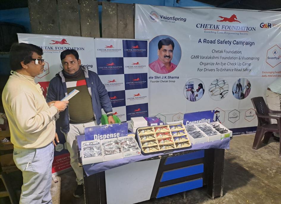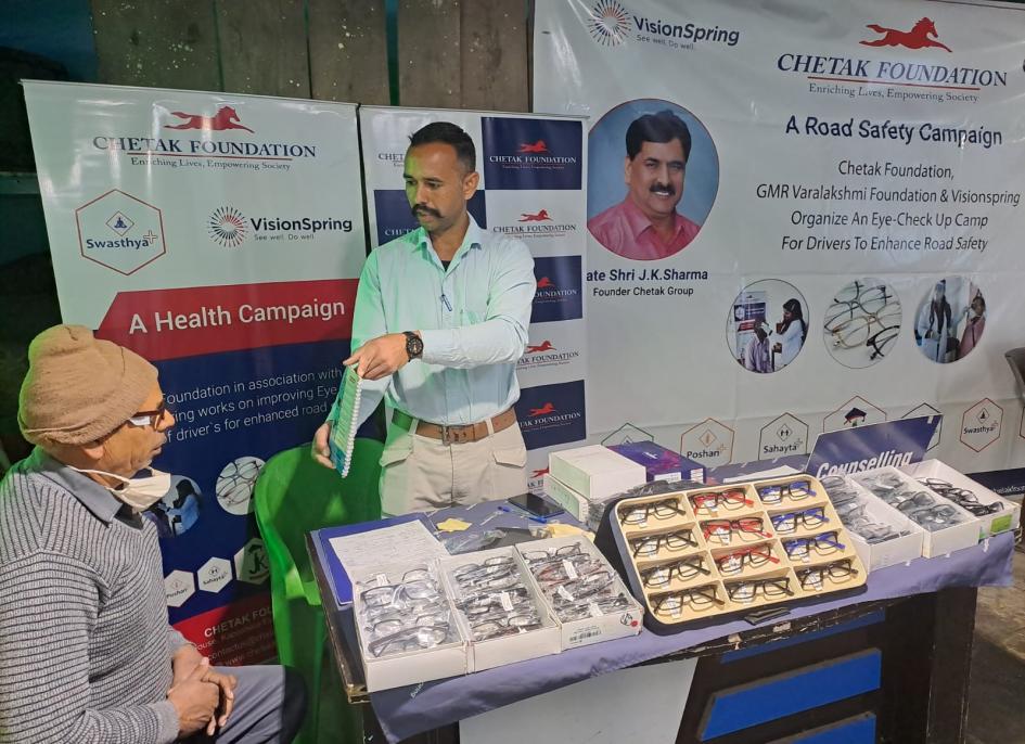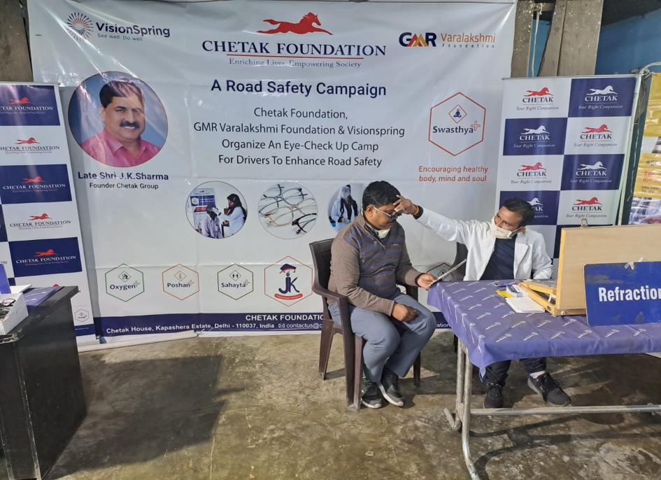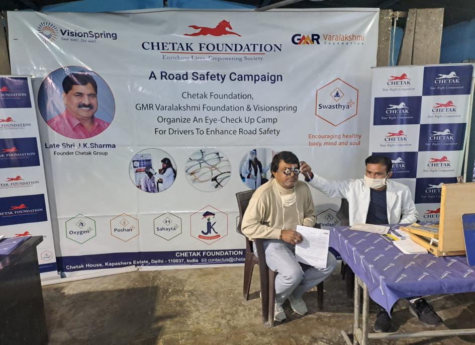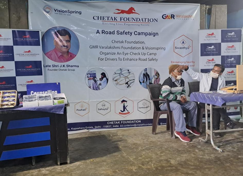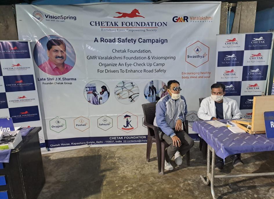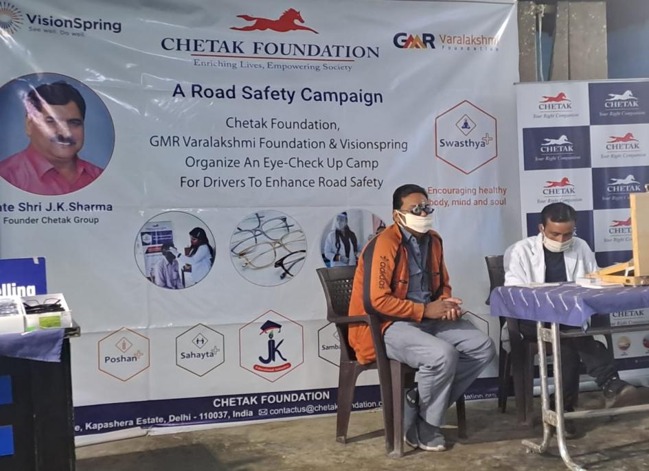 Chetak Foundation organized second Eye Check Up Camp of a series under its Swasthya Plus Initiative with Vision Spring in association with GMRVF (Varalakshmi Foundation) for the cab drivers at Delhi Airport, Delhi. Eye Check-Up was carried out for more than one hundred drivers. Free spectacles were also provided to those needing vision correction.