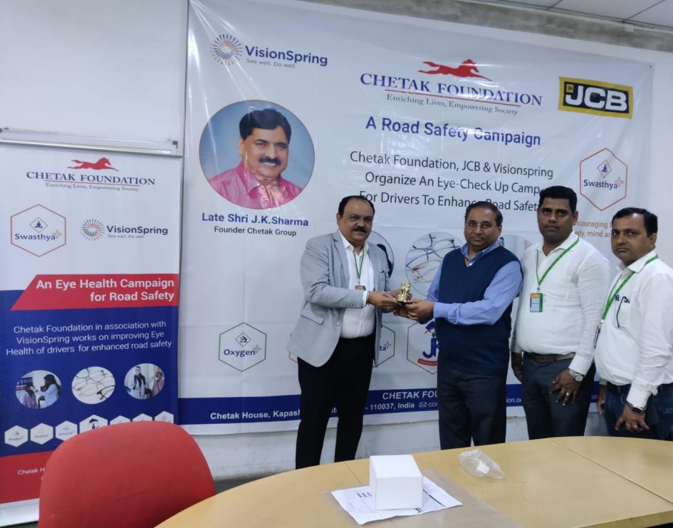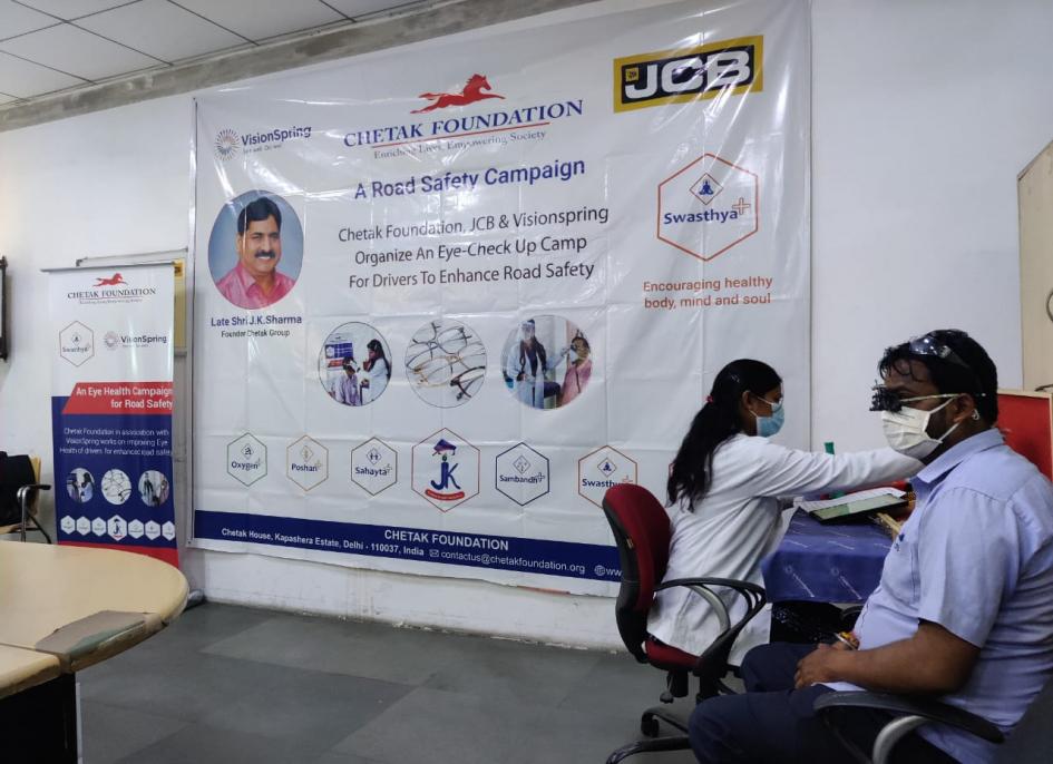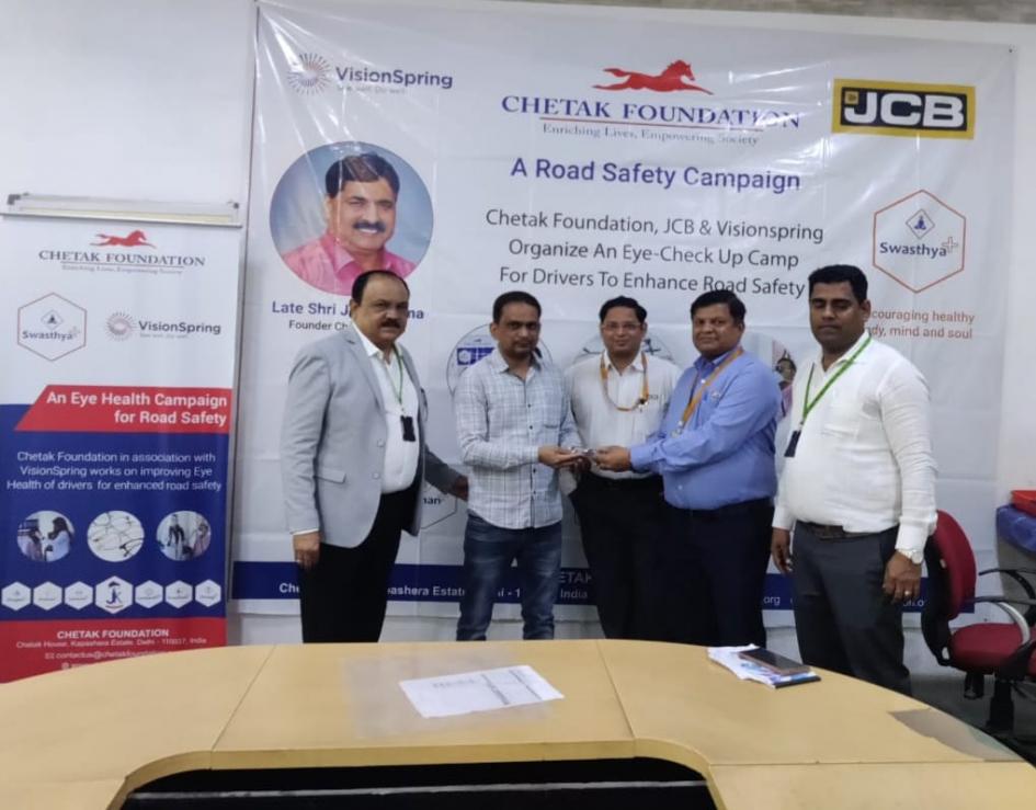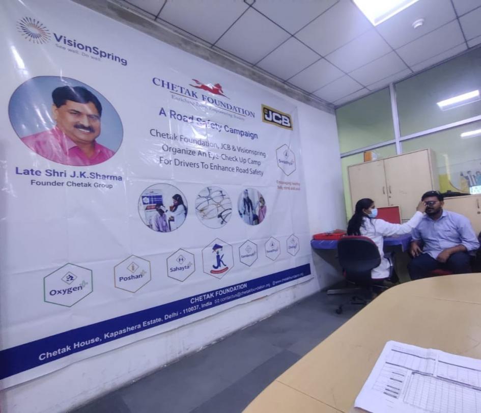 Chetak Foundation organized an Eye Check Up Camp under its Swasthya Plus Initiative with Vision Spring in association with JCB for their truck drivers at Ballabhgarh, Faridabad plant. The camp was inaugurated by Mr. Sanjay Khurana (Branch Head of JCB) and Mr. S.M Arora (Branch Head of Chetak Foundation at Faridabad Warehouse). The initiative was appreciated by Mr. Sanjay Khurana and Mr. Abhishek Agarwal (HR Head of JCB) for this timely initiative of Chetak Foundation for their underprivileged drivers by improving their vision and safety on the roads. . Eye Check-Up was carried out for more than one hundred drivers. Free spectacles were also provided to those needing vision correction.