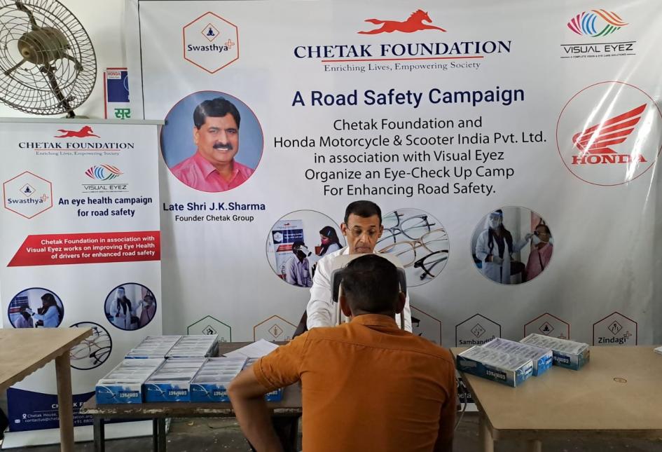 Chetak Foundation has partnered with Visual Eyez and organized an eye check up camp for truck drivers at HMSI (Honda Motorcycle and Scooters India Ltd) at Dharuhera, Haryana. The initiative is an effort to acknowledge and recognize the hard work and contribution of drivers towards the growth of the logistic sector in India and their role in nation-building. Eye check was carried out and free spectacles were provided to those who required vision correction to enhance their safety on Indian roads.
