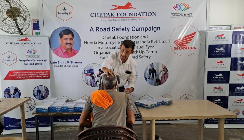 Chetak Foundation has organized an eye check up camp for truck drivers with Visual Eyez in association with HMSI (Honda Motorcycle and Scooter India Ltd) at Dharuhera, Haryana.
