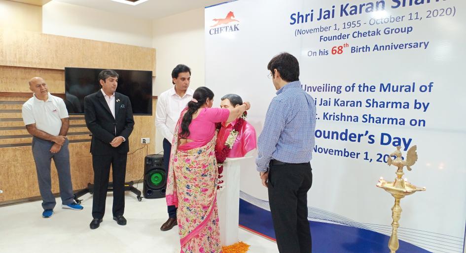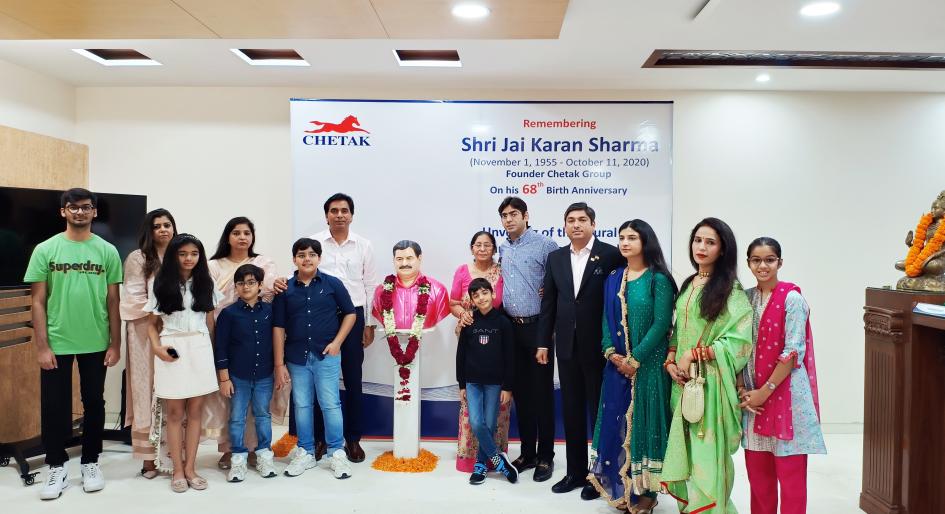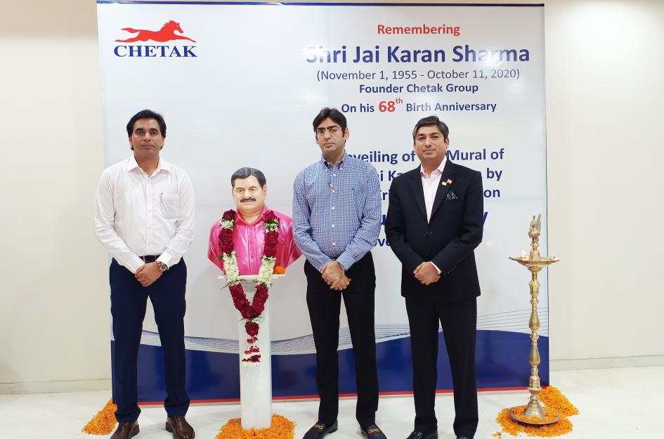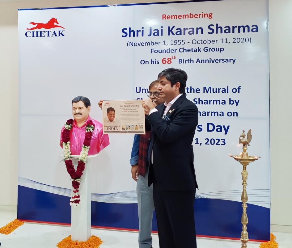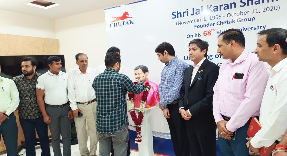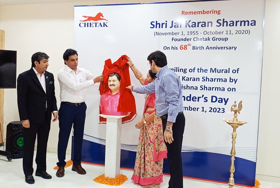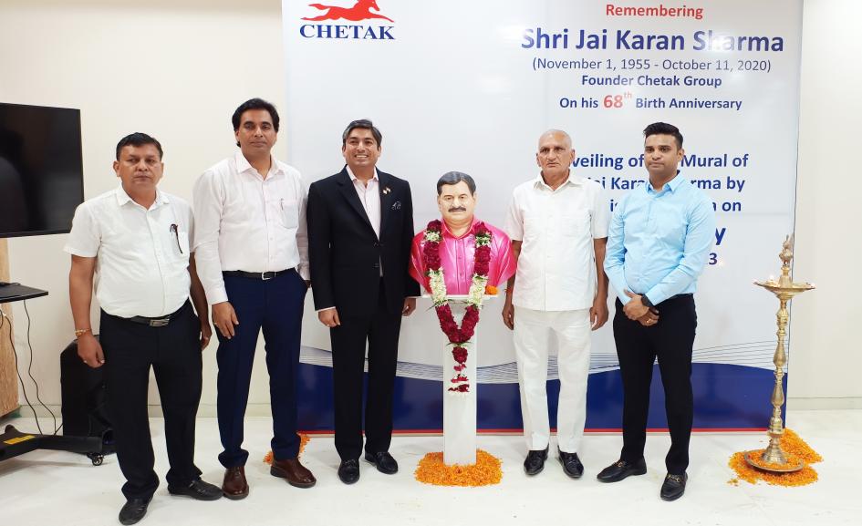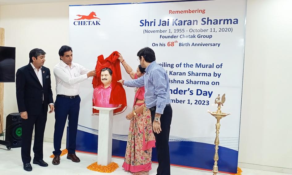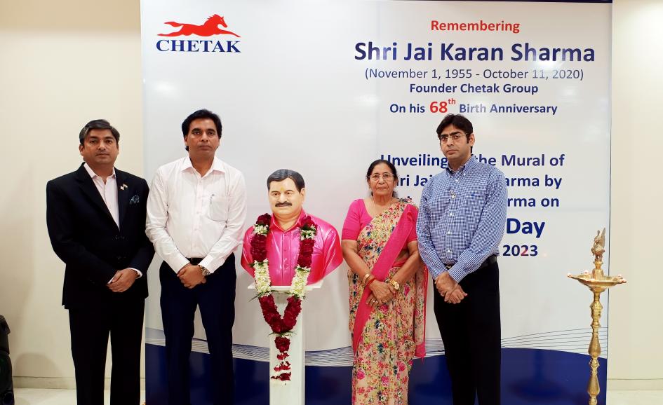 On the occasion of the 68th birth anniversary of the revered founder chairman Shri Jai Karan Sharma, the Chetak family celebrated by commissioning a magnificent marble statue in his honor. Crafted with meticulous precision by the esteemed artist, Satya Narayan Pandey from Jaipur, this impressive sculpture stands as a testament to Shri Jai Karan Sharma`s enduring legacy. The inauguration took place at Chetak`s Head Office in Delhi, and it was a moment of deep reverence and admiration. With deep respect and gratitude, Smt. Krishna Sharma dedicated this remarkable installation to the cherished memory of her husband, the esteemed Founder and Logistics luminary, Shri Jai Karan Sharma, on November 1st, 2023. This date, coinciding with the Chetak Group Foundation Day, serves as a fitting tribute to the visionary leader`s lasting impact. The monumental statue not only serves as a symbol of remembrance but also reflects the values and principles instilled by Shri Jai Karan Sharma within Chetak. It stands as a timeless reminder of the indelible mark he left on the logistics industry and continues to inspire present and future generations. The commemorative installation embodies the legacy and values that propel the Chetak family forward, serving as a beacon of inspiration and the values that continue to drive the Chetak family forward.