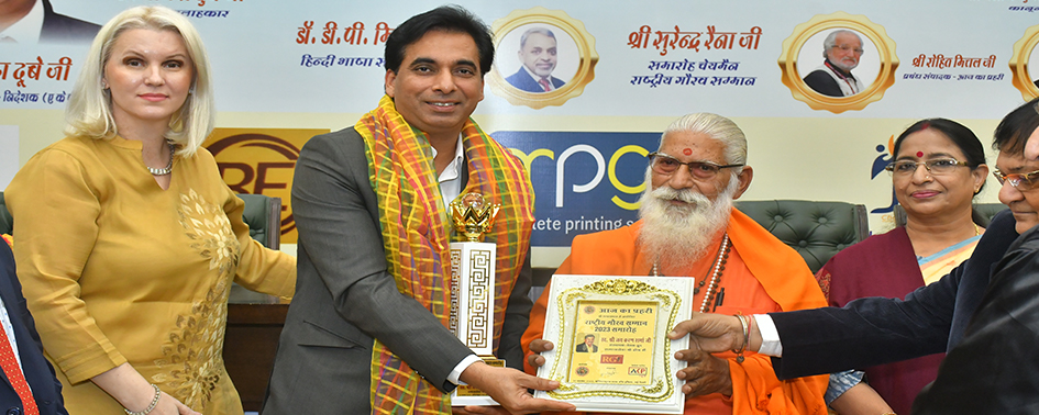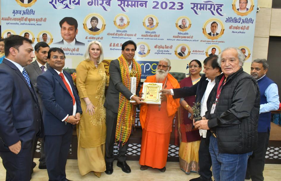 Shri Jai Karan Sharma Founder Chetak Group being conferred with Rashtriya Gaurav Samman for his outstanding contribution to society.