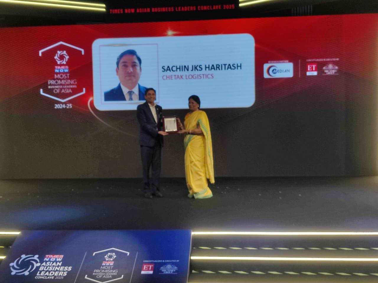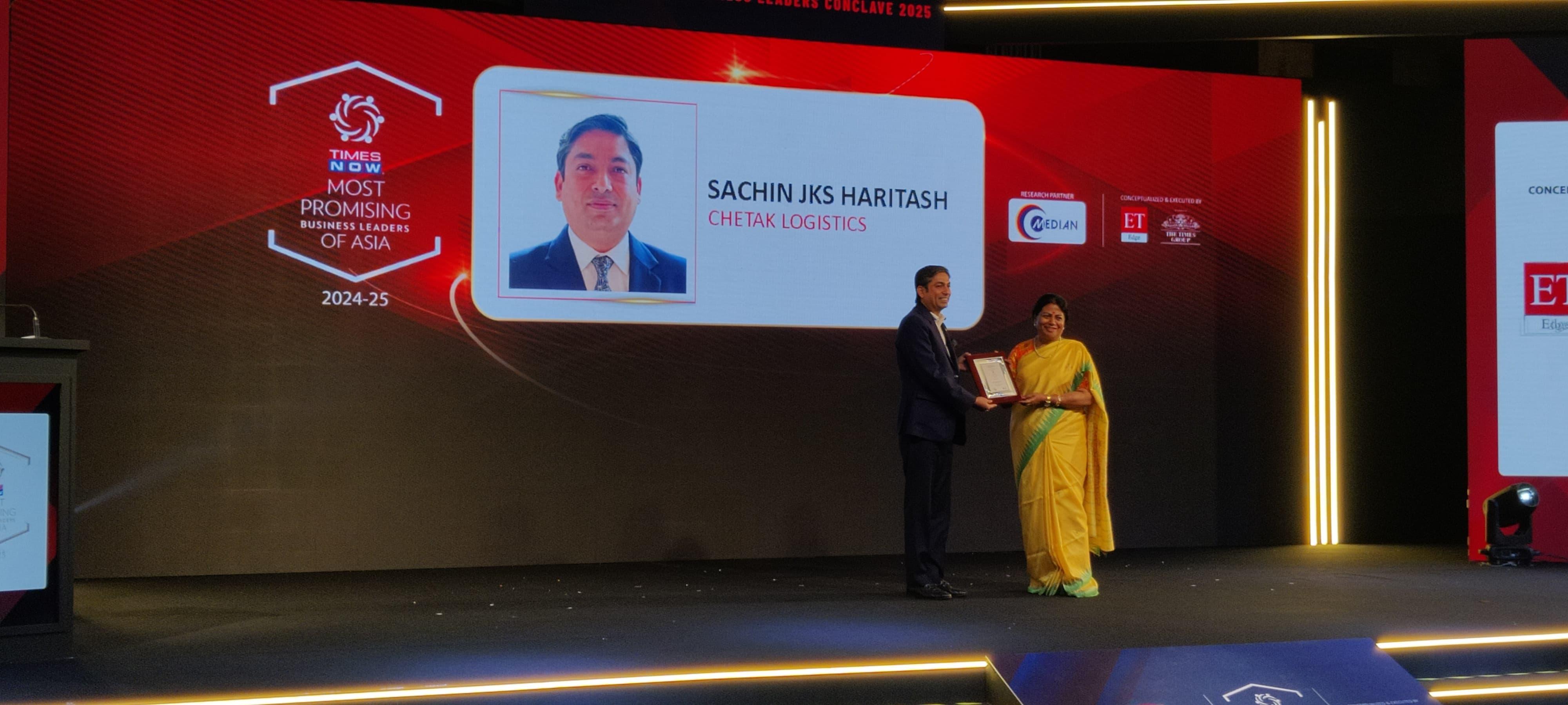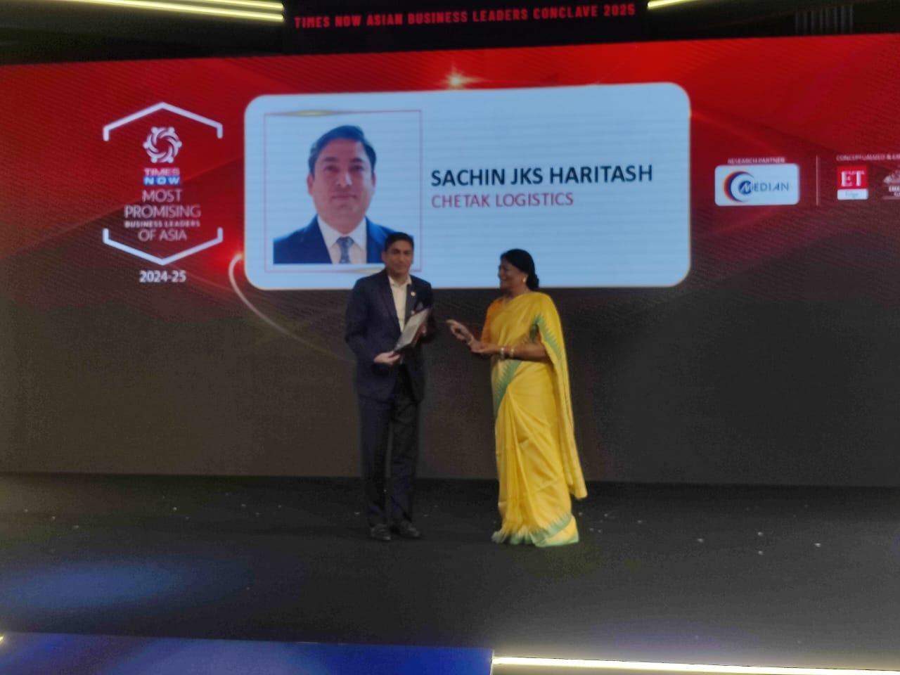 Sachin JKS haritasH has been recognised as one of the Most Promising Business Leaders of Asia 2024-25 by Times Now