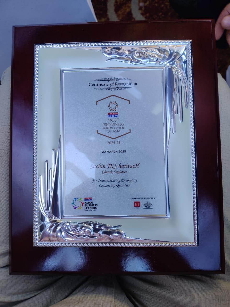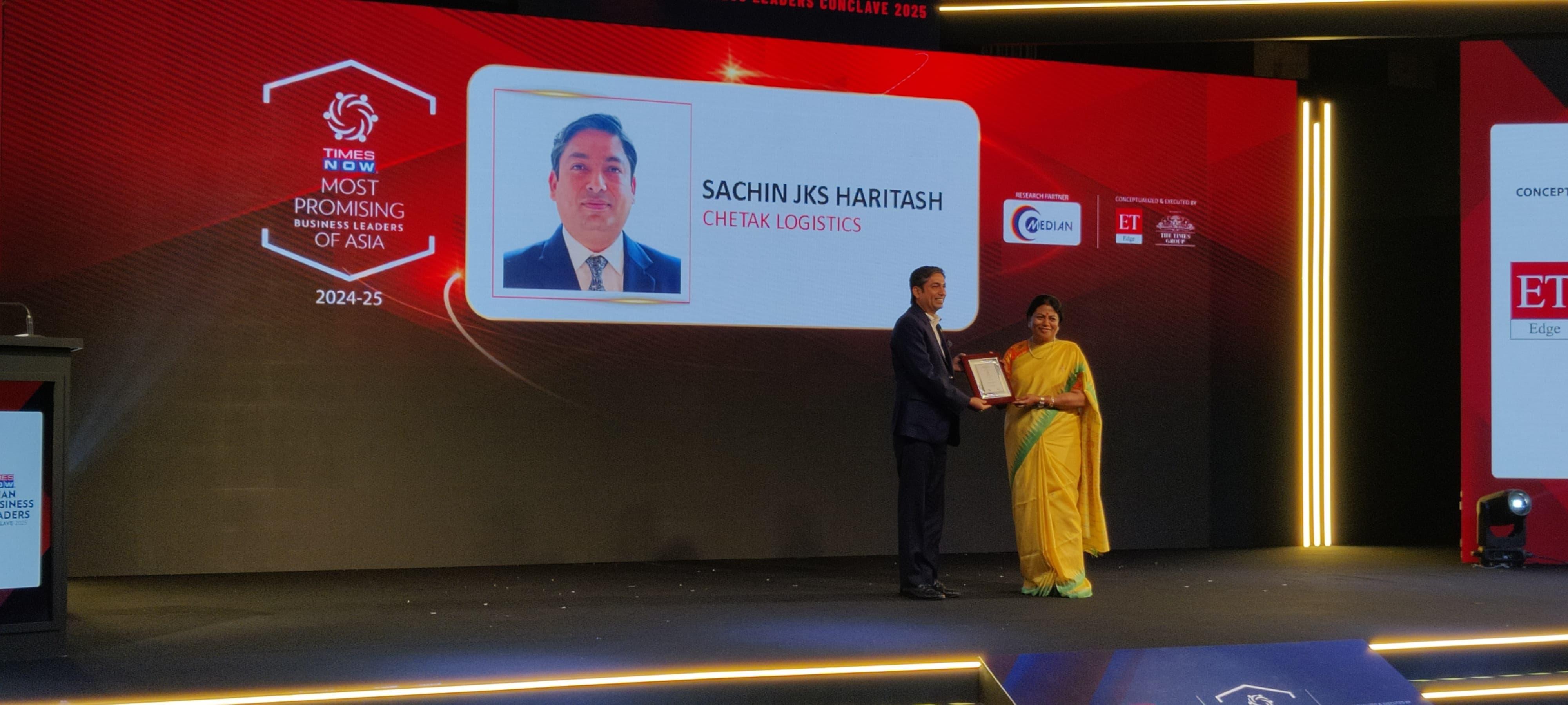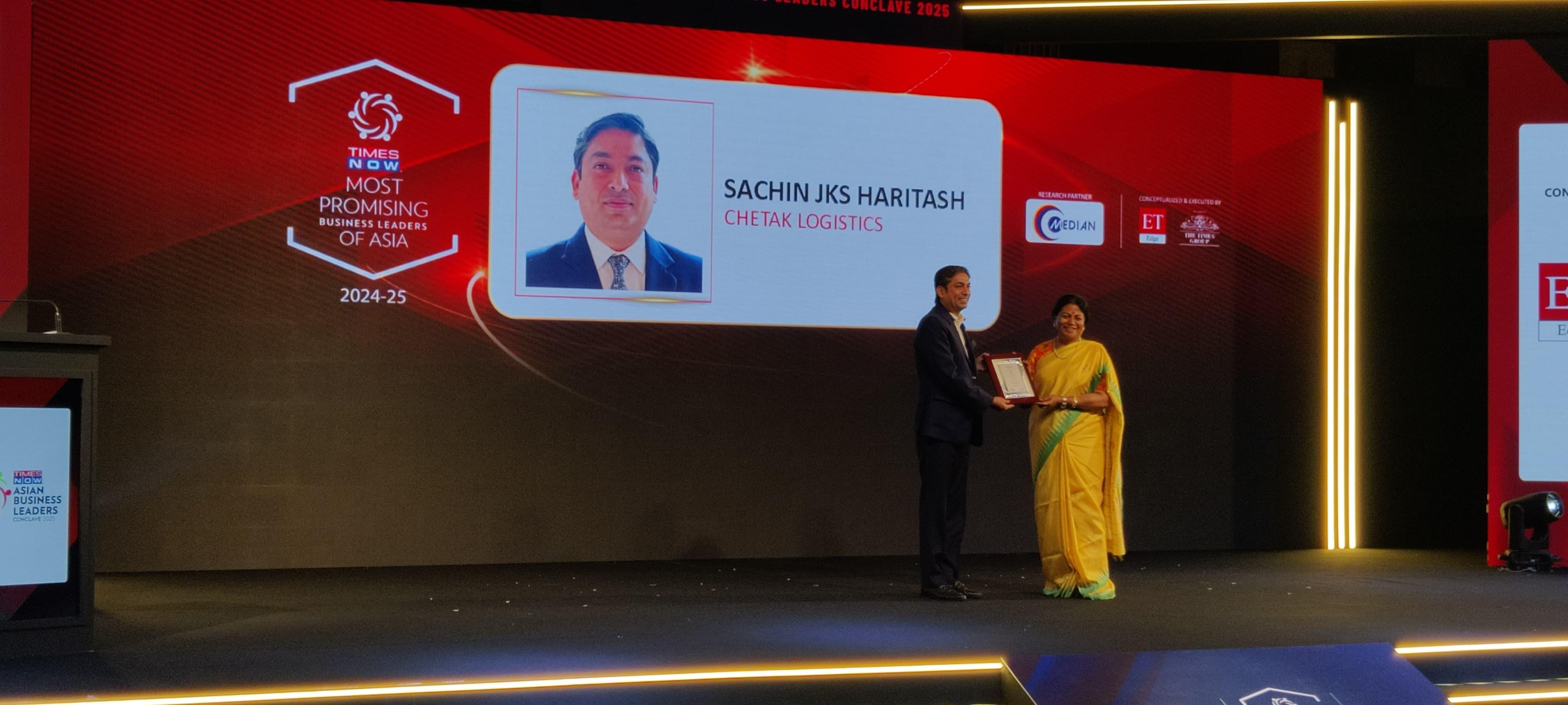 Sachin JKS haritasH has been recognised as one of the Most Promising Business Leaders of Asia 2024-25 by Times Now