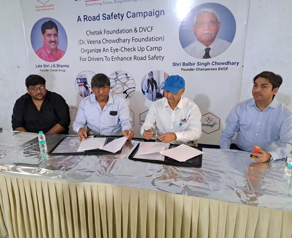 Chetak Foundation, the CSR arm of Chetak Logistics, has partnered with DVCF (Dr. Veena Chowdhary Foundation) by Signing an MoU to work together in Health and Road Safety. The MoU was signed by Mr. Arun Arora, Head and Director of Chetak Foundation and Retd Col K.P. (Kanwar pal) Aggarwal, Chairperson of DVCF, in the presence of Mr. Sachin JKS haritasH, Director of Chetak Logistics, Mr. Mohit Aggarwal, Trustee, DVCF and teams from both Foundations. The partners propose to take up activities on the charter of both foundations. These include road safety awareness programs and eye check-up camps for driver communities.Speaking on the occasion, Col K.P. Aggarwal, Chairperson of DVCF, said, `Our Foundation specializes in Eye checkups and treatment, and we are delighted to sign an MOU with Chetak Foundation to build upon our mutual strength and synergies. I am sure our shared values and this alliance will help the beneficiaries, including the drivers who are a major part of Indian logistics. We hope such initiatives inspire more organizations to join for such noble causes".