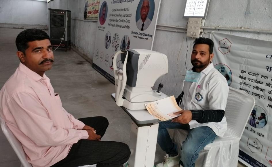 Chetak Foundation organized an eye checkup camp with Dr Veena Chaudhary Foundation for truck drivers and cleaners at Rajpura warehouse .
