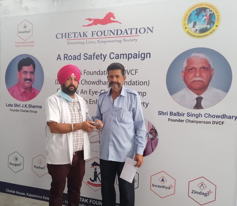 Chetak Foundation has partnered with Dr Veena Choudhary Foundation and organized an eye check up camp for truck drivers and cleaners at Rajpura warehouse of Chetak company compound. The initiative is an effort to acknowledge and recognize the hard work and contribution of drivers towards the growth of the logistic sector in India and their role in nation-building. Eye check was carried out for drivers and cleaners who attended the camp and free spectacles were provided to those who required vision correction to enhance their safety on Indian roads.