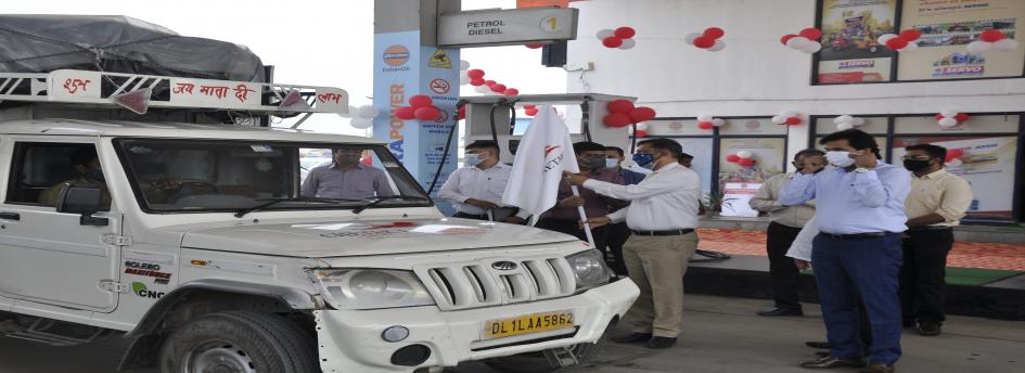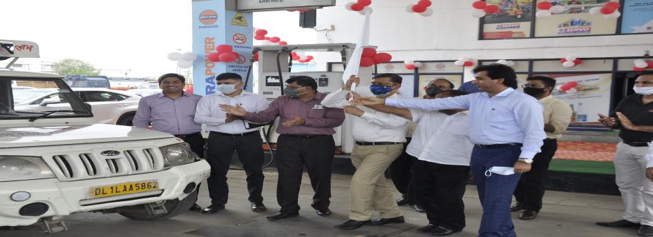 The Chief Guest Shri Sanjay Sinha, CGM Indian Oil Corporation along with Shri Mukesh Haritash flagging off the Swasthya Vahan after felicitating and giving away Sanitization kits to drivers and IOCL frontline workers as part of Chetak Foundation`s Swasthya Plus Initiative.