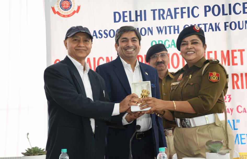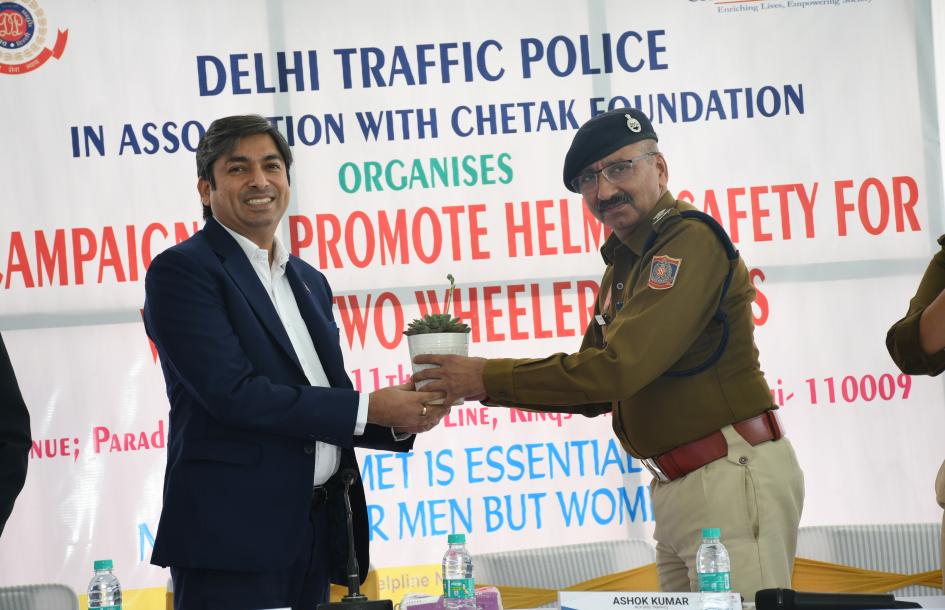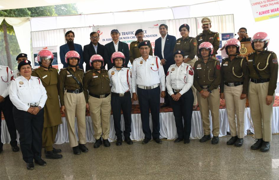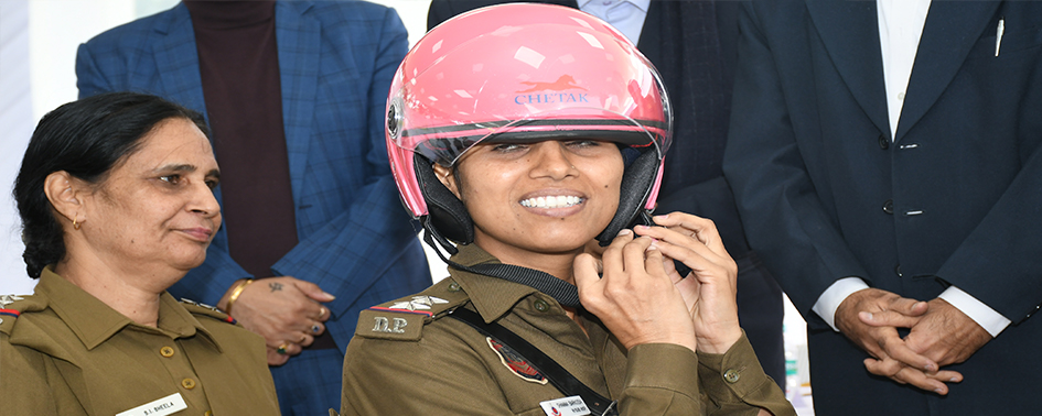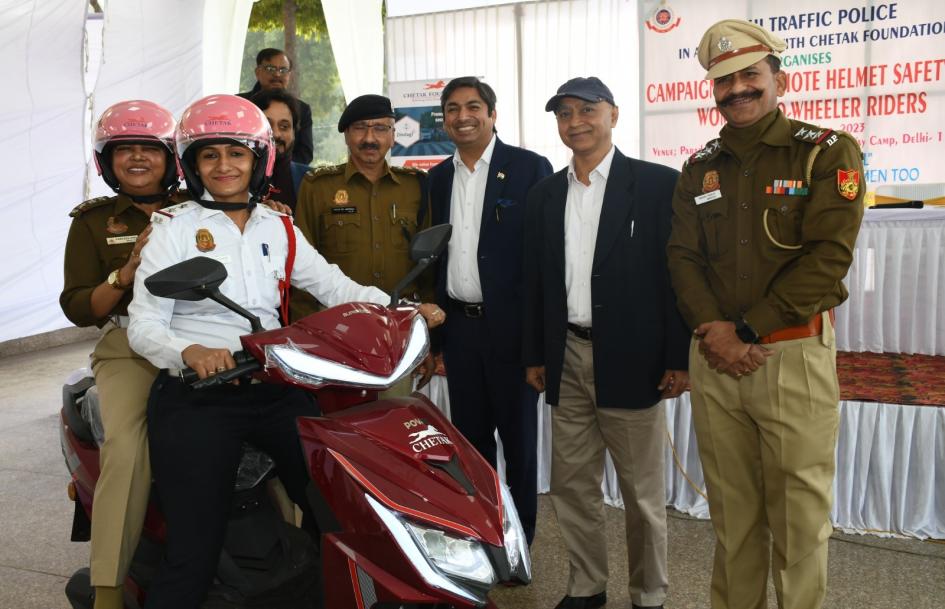 Chetak Foundation in association with Delhi Traffic Police launched a Road Safety Campaign for women by distributing 300 helmets and an electric bike to female trainee police officers and college girls in the presence of DCP Traffic Shri Shashank Jaiswal and other senior functionaries of Delhi Police, at Parade Ground in Delhi.