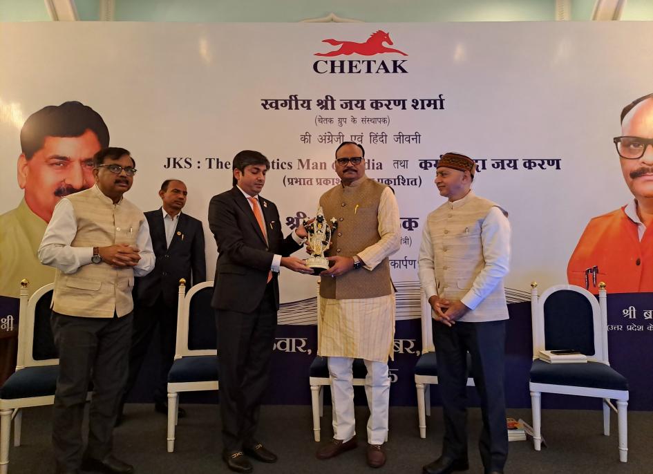 Lucknow, November 30, 2023: Hon`ble Deputy Chief Minister of Uttar Pradesh Shri Brijesh Pathak ji released “JKS – The Logistics Man of India” - a Biographical Book on the Late Shri Jai Karan Sharma, Founder - Chetak Group, to honour and acknowledge Shri Sharma as a self-made entrepreneur and a philanthropist, at a momentous event here, today. Authored by the senior communications professional Shri Arun Arora, the Biographical book capturing the life journey of Shri Jai Karan Sharma was released by Shri Brijesh Pathak ji in the presence of Shri Sachin JKS haritasH, son of Shri Jai Karan Sharma and Director, Chetak Group, Arun Arora the Author of the Biography in English, Shri Prabhat Kumar, Chairman, Prabhat Group, the publisher of the biography and Shri Madhurendra Sinha, author of the biography in Hindi. Shri Jai Karan Sharma, son of a farmer hailing from Jhinjhar, a small village in Haryana, was a self-made entrepreneur who started from scratch setting up Chetak Logistics in 1979 and went on to build Chetak Group, the leader in Logistics in India. He brought in the latest technologies and management techniques in Logistics. He excelled as an industry and thought leader who relentlessly pursued inclusive growth. Speaking on the occasion, Hon`ble Deputy Chief Minister, Uttar Pradesh, Shri Brijesh Pathak ji said, "I am happy to release a biographical book of Shri Jai Karan Sharma ji, who was the son of the soil. A self-made person with a rural background and moderate means, he fought against all odds to build a company that created substantial employment and contributed to the economy. People like him help the government`s efforts in working on various development initiatives, and I am sure the book, which captures his trials, tribulations and successes, will inspire the youth of future generations to emulate him, become entrepreneurs and take advantage of various government policies to create employment, rather than seeking employment." Titled `JKS–The Logistics Man of India’, the captivating biographical book captures Shri Sharma`s illustrious life journey wherein he excelled on the professional and social front leaving his illustrious legacy behind. Shri Sachin JKS HaritasH, Director of Chetak Group and son of Shri Jai Karan Sharma said, "We are humbled that the Hon`ble Deputy Chief Minister of Uttar Pradesh Shri Brijesh Pathak ji has released the autobiographical book of Sharma ji. This is a blessing for all of us. Sharma ji started his business life with meagre capital. His hard work, passion, determination and, above all, his desire to support everyone around him helped him achieve such great heights. We are determined to carry forward his legacy, expanding his business and spreading his good deeds by helping the underprivileged. My special thanks to Arun Arora ji for tirelessly working on this book to make our dreams come true." Shri Sharma was a people`s man. He believed in the dignity of labour and made it his mission to accord respect to the community. He stood for inclusive growth by supporting many potential entrepreneurs to set up their own transport companies. He was passionate about helping underprivileged people. He contributed to the education sector through the infrastructure development of schools and colleges. Shri Arun Arora, a senior communications professional and Director Chetak Logistics who authored the biography in English shared his experience of writing the biography. “It was such a pleasure and honour to work on the biography of the illustrious life journey of Shri Jai Karan Sharma as people like him is rare to find. I along with Sachin JKS haritasH and Shri Madhurendra Sinha, author of Hindi biography travelled to over a dozen cities, meeting 160 acquaintances of Shri Jai Karan Sharma, capturing their views, experiences and perspective of his life journey. It was as if we moved in the era when he lived and we lived his life with him. Hope the book encourages and inspires the youth to explore entrepreneurship and it becomes a reference book for posterity.” Shri Jai Karan Sharma received national recognition from various credible organisations for his contribution to the industry, entrepreneurs and society. He was conferred with the "Transport Rattan" Award, "Outstanding National Citizen" Award, "Transport Samraat" Award and the Rashtriya Udyog Rattan Award. He left for his heavenly abode in October 2020. Alden Global bestowed him the title of "The Logistics man of India` on behalf of the Logistics Industry in 2021. The Government of India issued a Postal Stamp to honour Shri Jai Karan Sharma for his contribution to the socio-economic development of India. Shri G. Kishan Reddy, Hon`ble Minister for Tourism, Culture and Development of North-Eastern Region, released the postal Stamp in 2022. He was also honoured with the "Life Time Achievement Award" at Social Impact Award in Jan 2023 for his outstanding philanthropic outreach to the underprivileged. The Cargo and Logistics Industry honoured him with the title of ‘Man of Logistics – an Outstanding Leader’ at CargoNXT Summit. Shri Nitin Gadkari, Hon`ble Minister for Road Transport and Highways, released Shri Jai Karan Sharma’s biography in Hindi, in Feb` 2023. His dream lives on through the Chetak Foundation, a social arm of Chetak Group, set up by his family as a tribute to Shri Sharma`s vision of positively impacting the lives of underprivileged communities. The Foundation focuses on Education, Environment, Health, Livelihood, Nutrition and Road Safety.