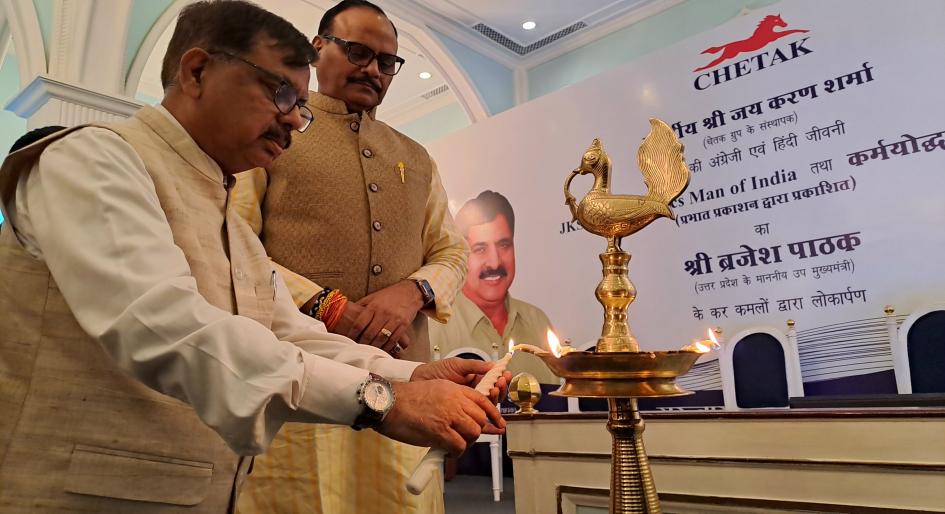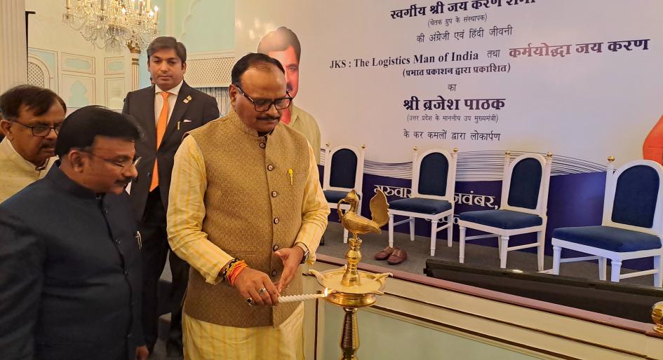 Release of Hindi and English biography of Late Shri Jai Karan Sharma Karmayodha Jai Karan & JKS: The Logistics Man of India by Shri Brijesh Pathak, Honorable Deputy Chief Minister of Uttar Pradesh