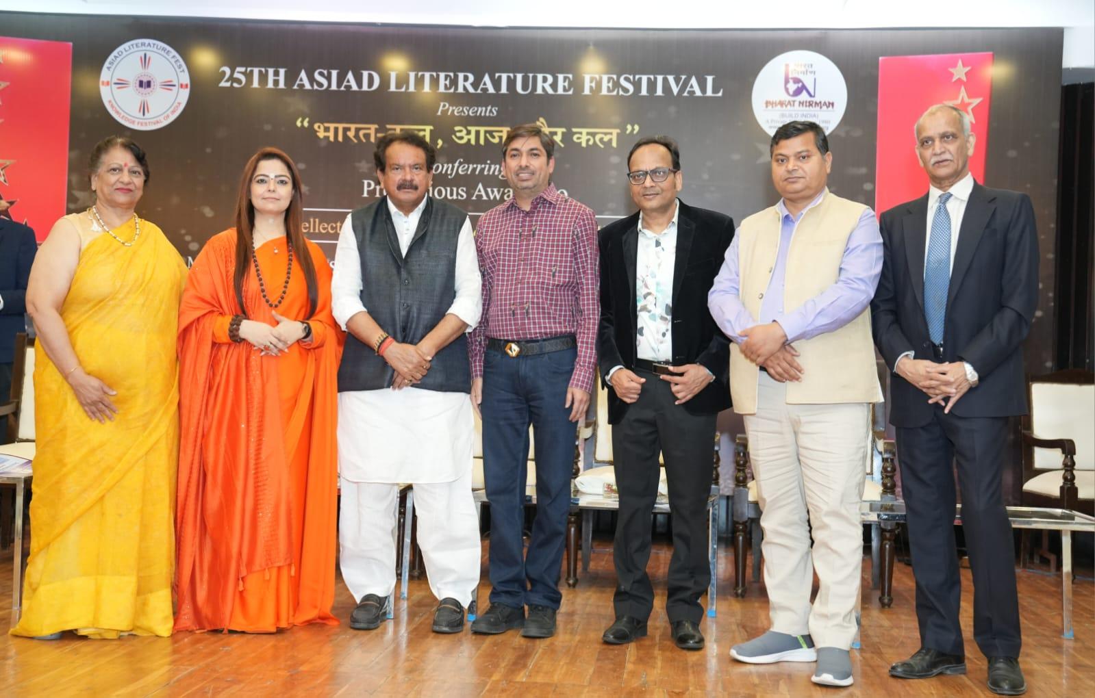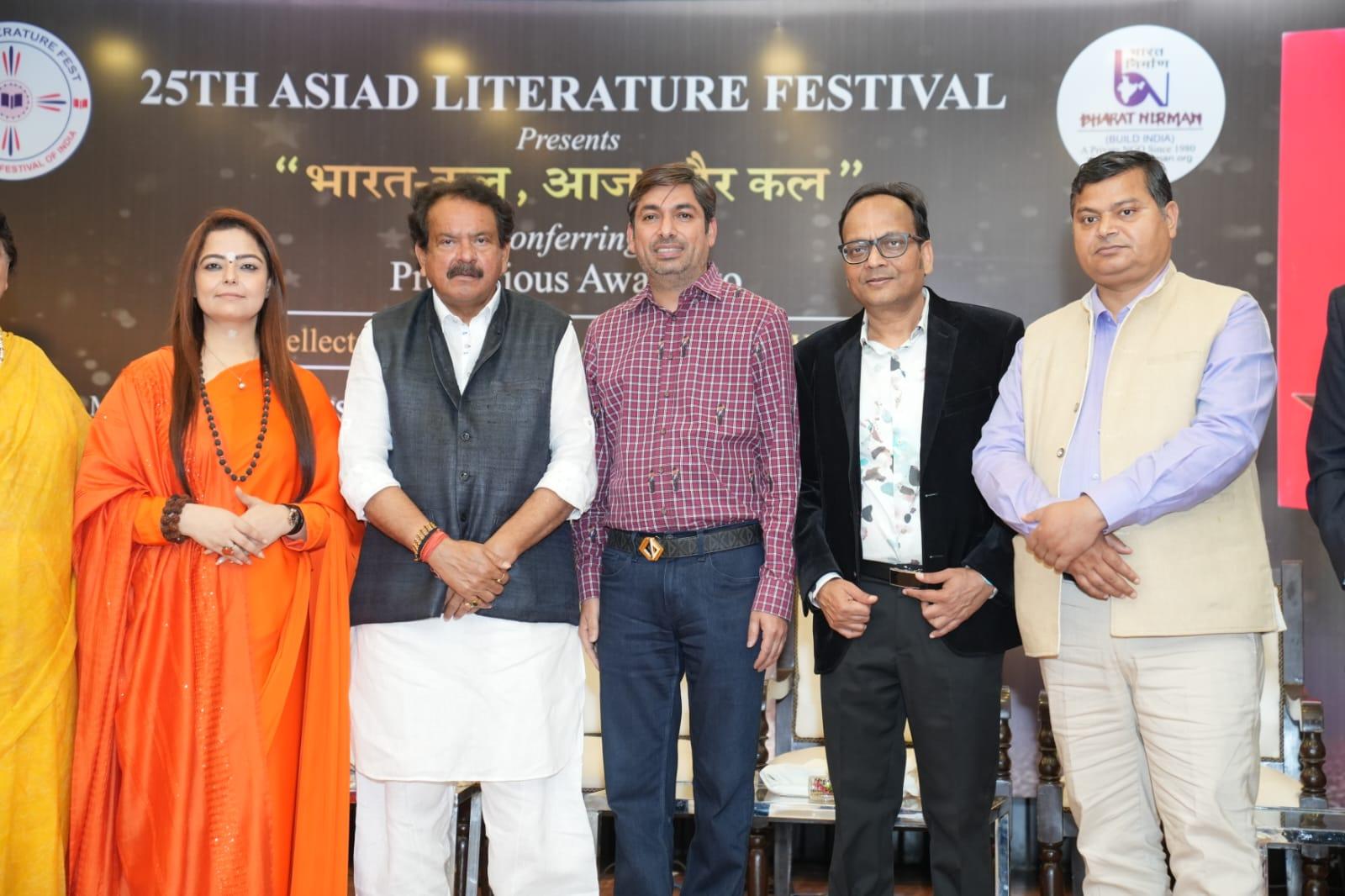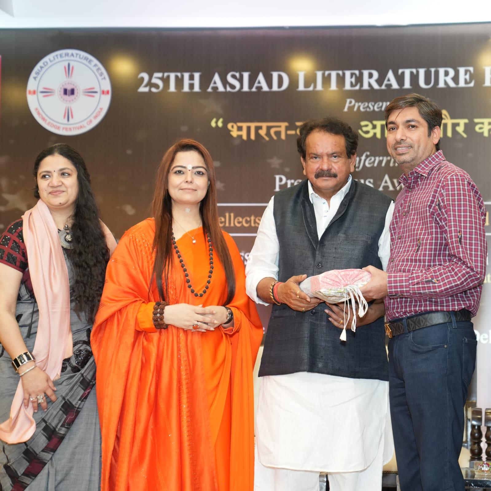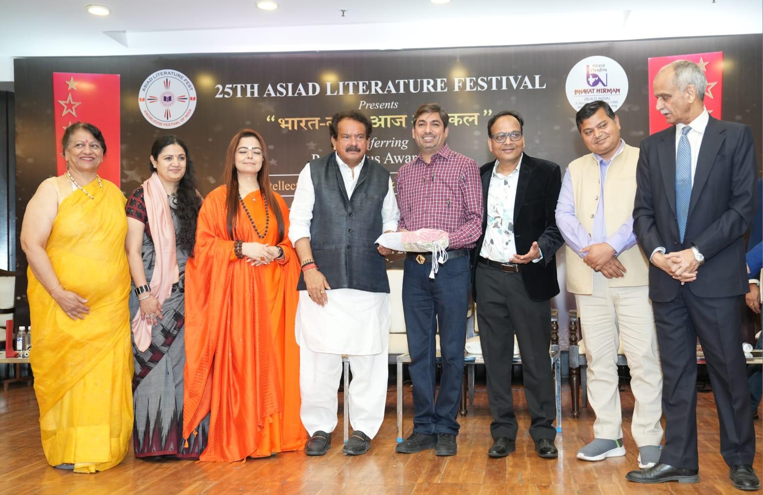 Sachin JKS haritasH, Director, Chetak Group, was felicitated by Shri S. P. Singh Baghel, MoS for Fisheries, Animal Husbandry & Dairying, and Shri Raj Bhushan Choudhary, MoS for Jal Shakti, at the 25th Asiad Literature Festival held at India International Centre, New Delhi
