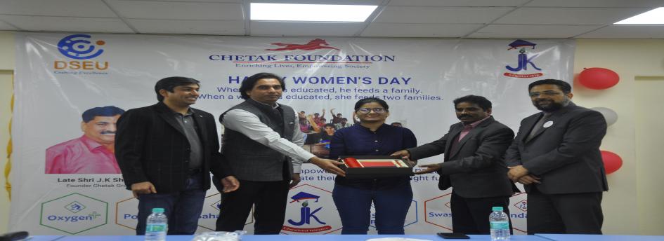 Underprivileged suffer from lack of education and unemployment, Chetak Foundation is supporting girl students of Delhi Skill and Entrepreneurship University with scholarship and livelihood opportunities. On the occasion of Women`s day Chetak Foundation presented a scholarship cheque to a girl student of Delhi Skill and entrepreneurship University
